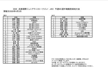 2026兵庫国際ジュニアテニストーナメント1(J60)予選WC選手権エントリーリスト