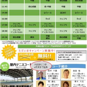 守口市民体育館インドアテニス教室が4月よりリニューアルいたしました。 詳細は守口体育館テニススクールホームページよりご覧ください。 守口体育館ホームページ