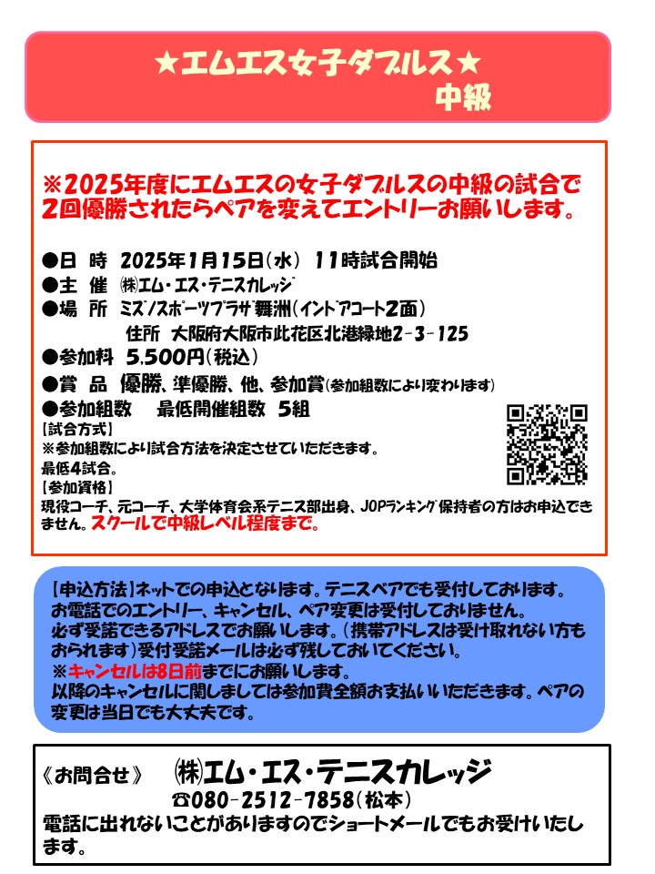 ★中級は2025年度にエムエスの試合で2回優勝されたらペアを変えてエントリーお願いします。