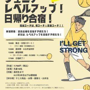 2026年5月6日(水・祝)ジュニアレベルアップ日帰り合宿