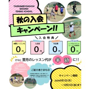 続きを読む鶴見緑地ミズノテニススクールでは「秋の無料体験レッスン」を受付中 お申し込みはお電話で